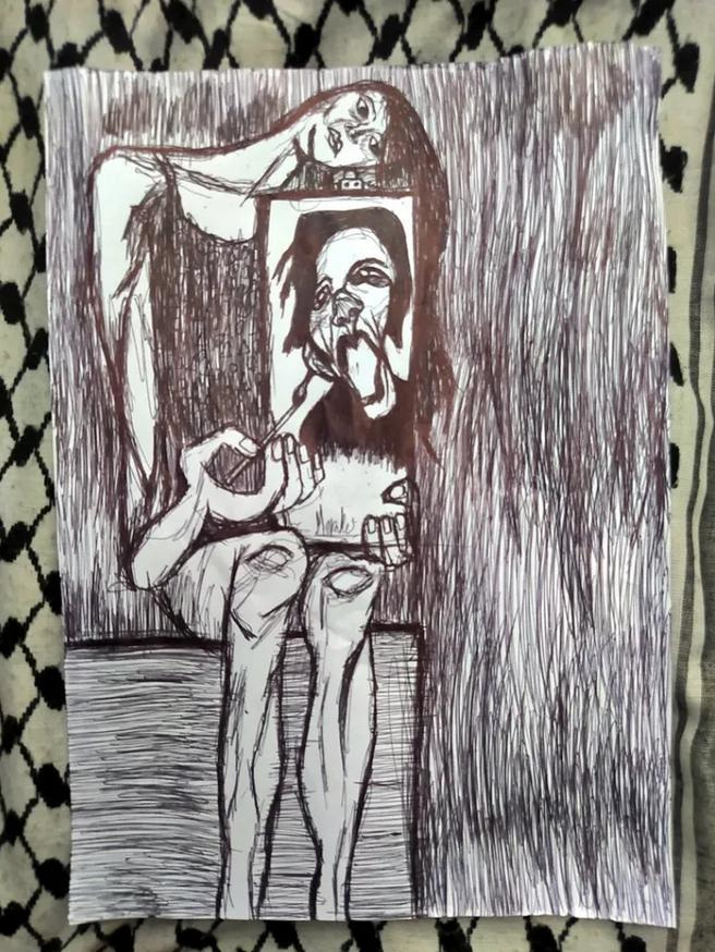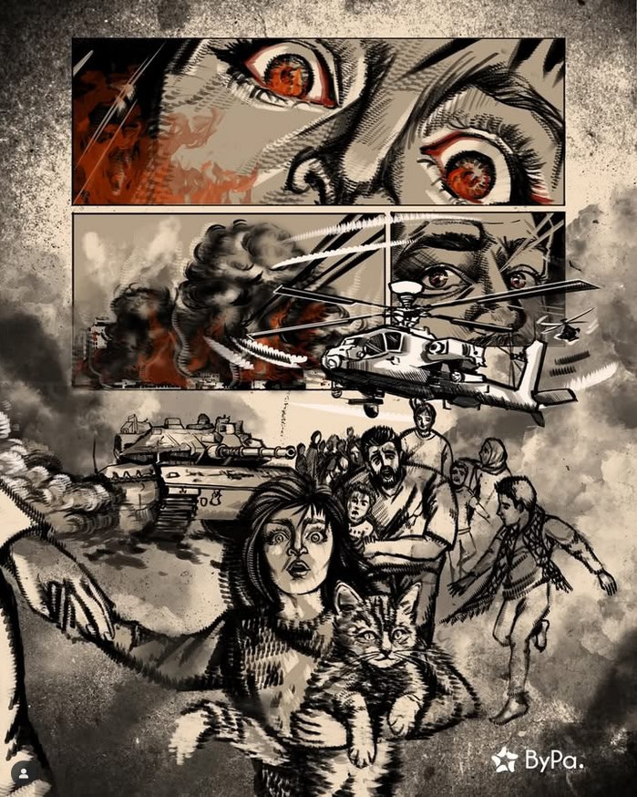 "From inside the tent, I’m here to speak to you about everything I’ve lived through—not just the events, but how I’ve captured this tragedy with my paintbrush. I want to leave behind a memory, so that if I am martyred, there will still be something to prove I was here—my brush and my paintings about the children of Gaza who lived through hunger, fear, deprivation, loss, exhaustion, and the world’s indifference…"